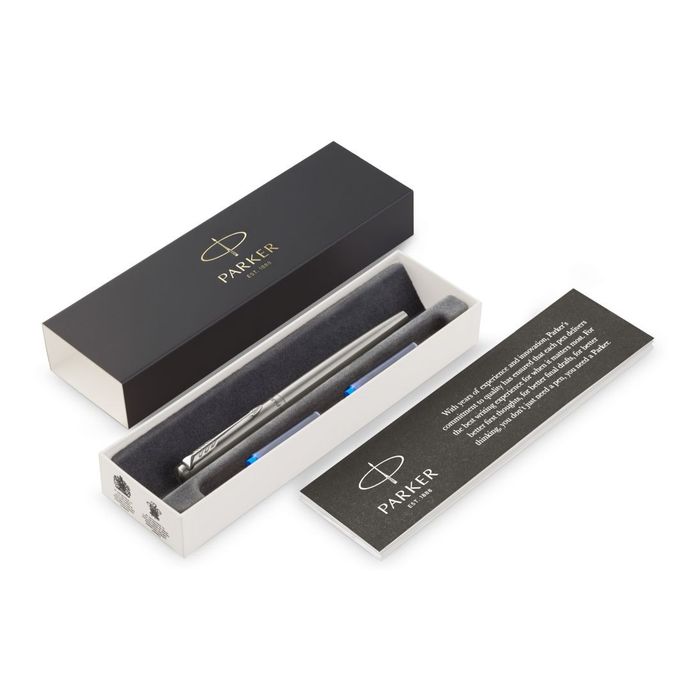 Перьевая ручка Parker Jotter Stainless Steel от официального дилера Parker в Пскове. Вы можете дополнительно заказать гравировку, которая подчеркнет Вашу оригинальность и придаст памятность статусному подарку. Все ручки Паркер поставляются в фирменном футляре.