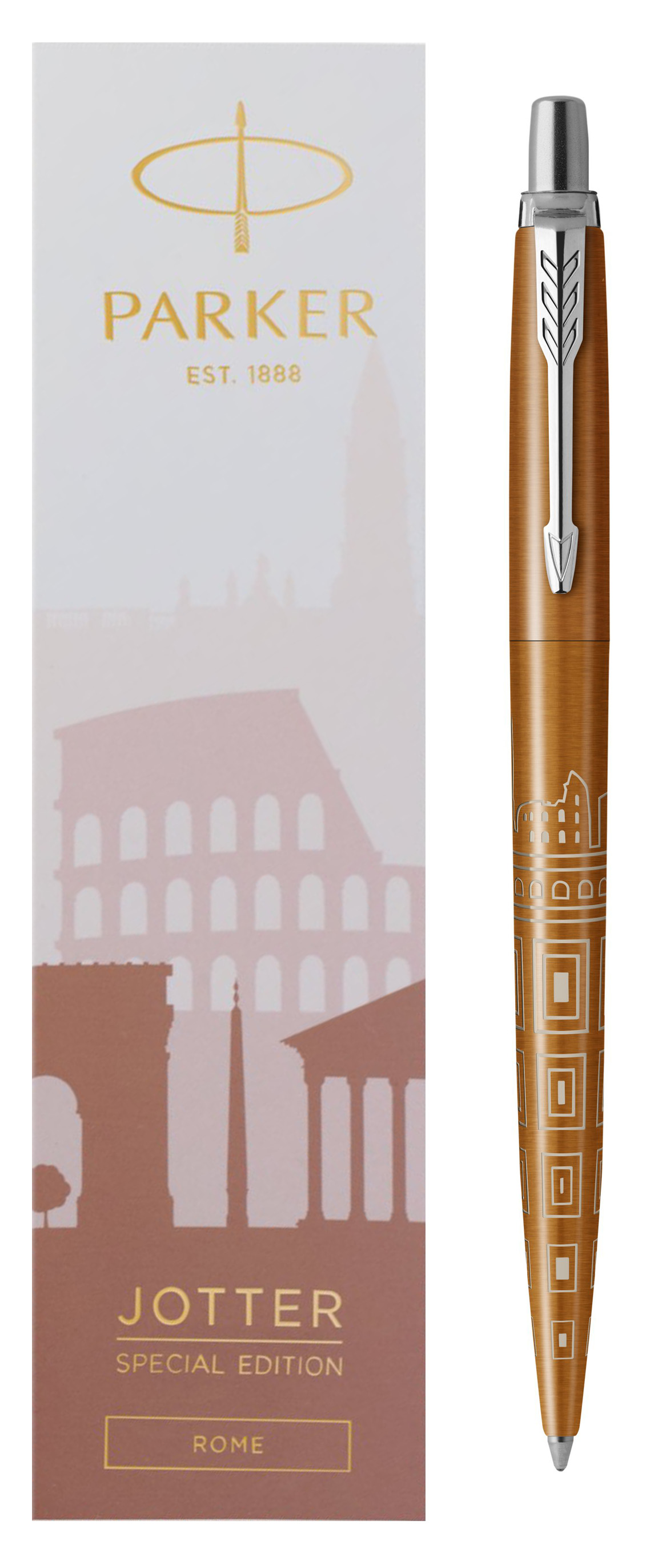 Ручка шариковая Parker Jotter Rome Bronze CT от официального дилера Parker в Пскове. Вы можете дополнительно заказать гравировку, которая подчеркнет Вашу оригинальность и придаст памятность статусному подарку. Все ручки Паркер поставляются в фирменном футляре.
